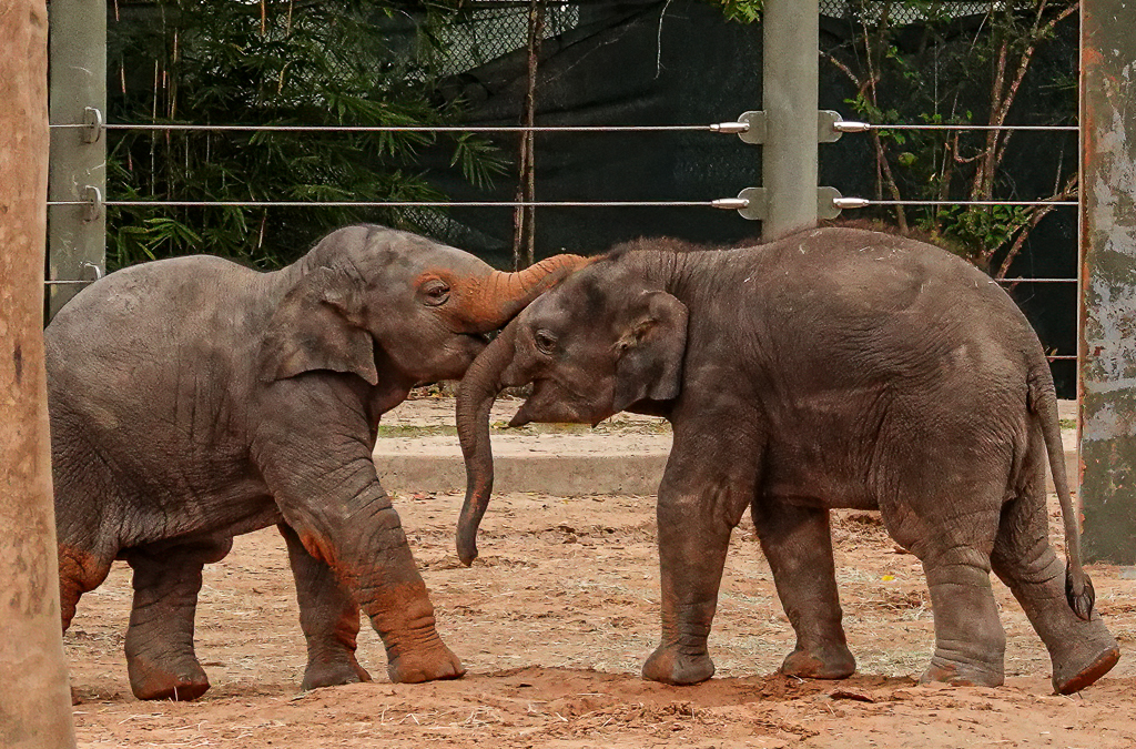 Previous ImageNext Image _20211124_TX&LA_DSC00103_Houston Young elephants playing. Asian elephants are struggling to survive in the wild.