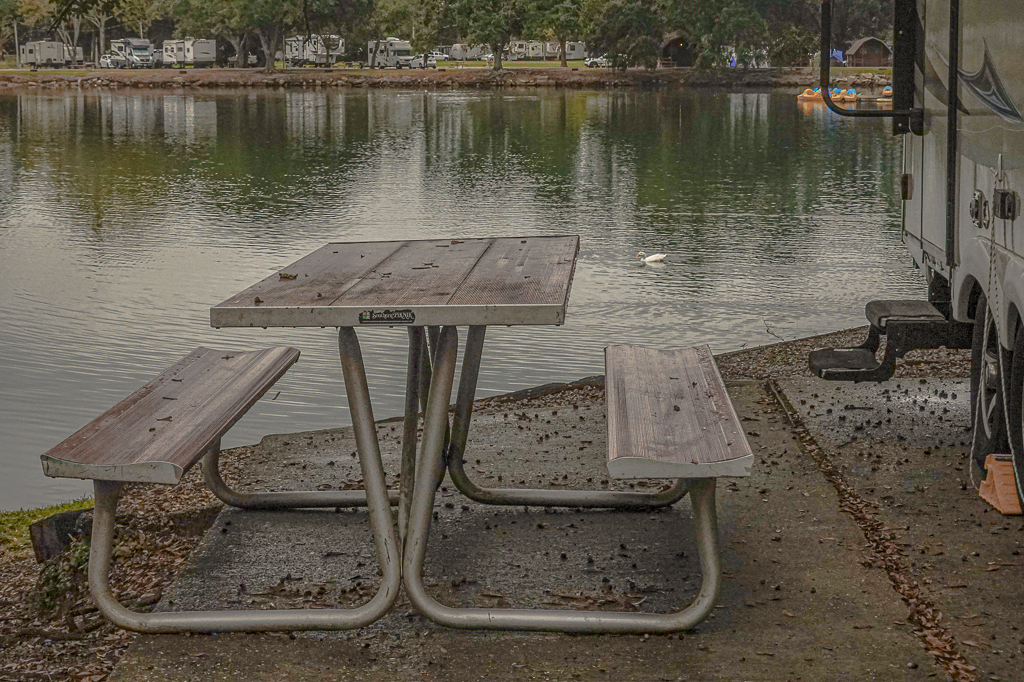Parked on a pretty lake