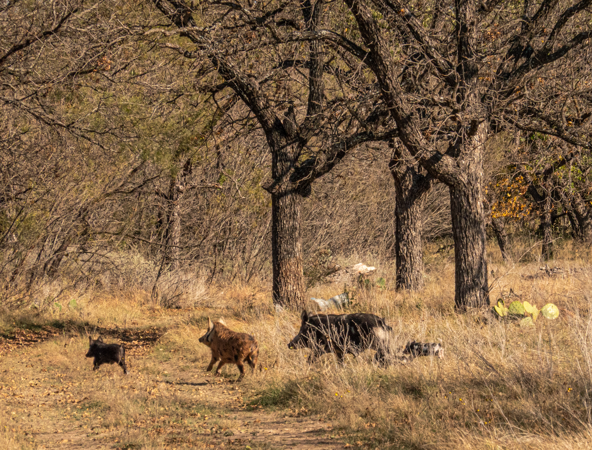 Previous ImageNext Image S. Llano 20211120 S. LLanoDSC09612 The hogs would let us approach them until we violated their circle of comfort, and then they scurried away.