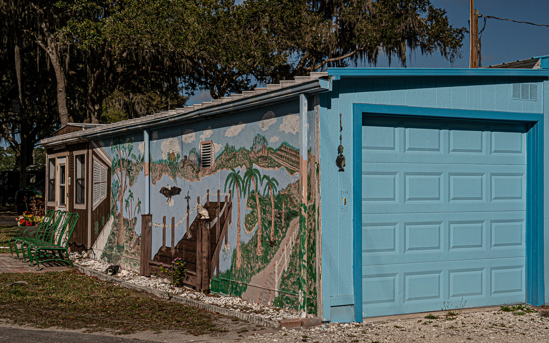 A mural was painted on one of the back buildings.
