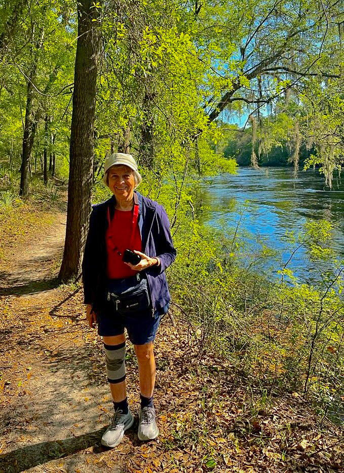 Joan hiking along Lime Sink Run