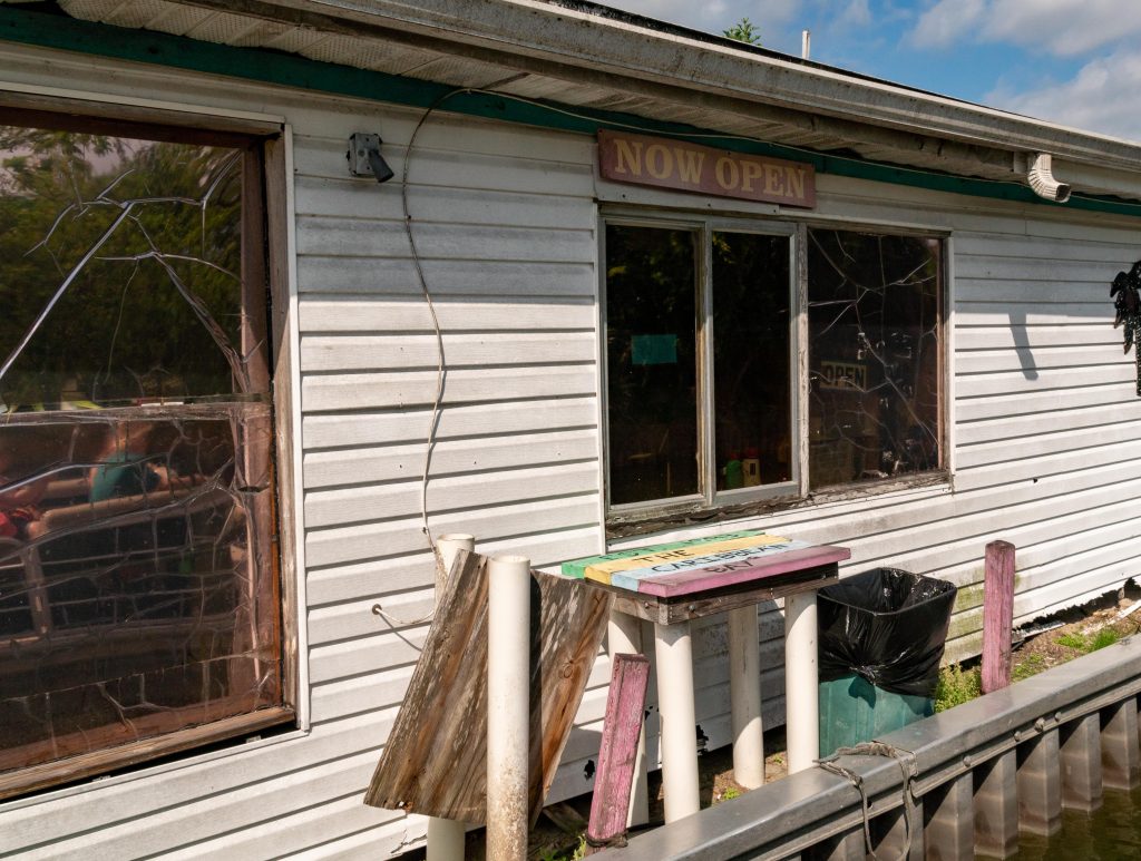 Previous ImageNext Image 20220409 Chain of Lakes Boat Tour-35 A food take-out window along a canal, in case you want something to eat.