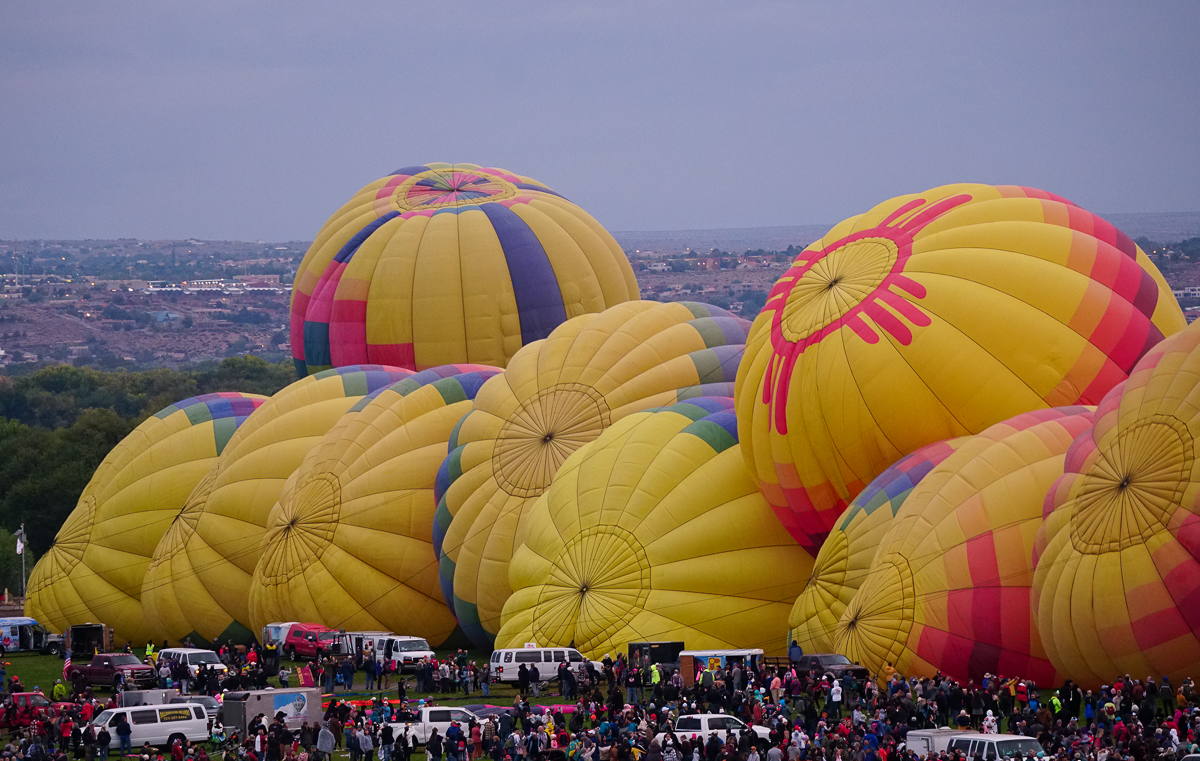 Inflating the balloons for the ascent.