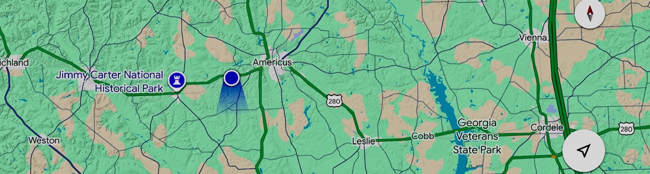 Map of train trip to Plains, GA to see Jimmy Carter’s hometown and childhood home,