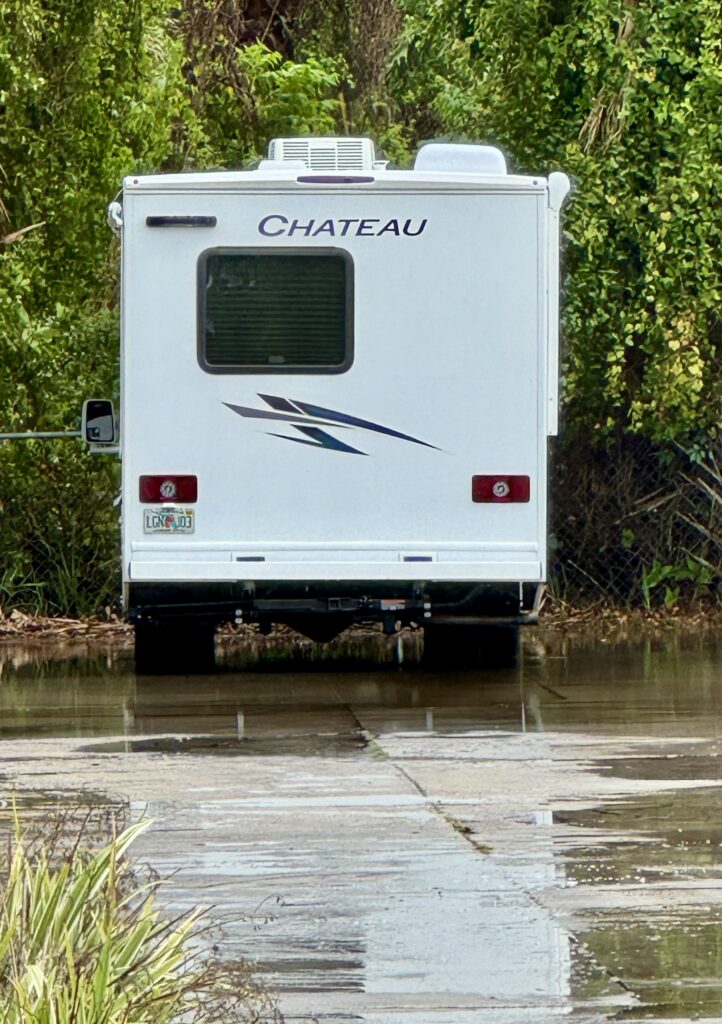 A very rainy day for our first trip return home.